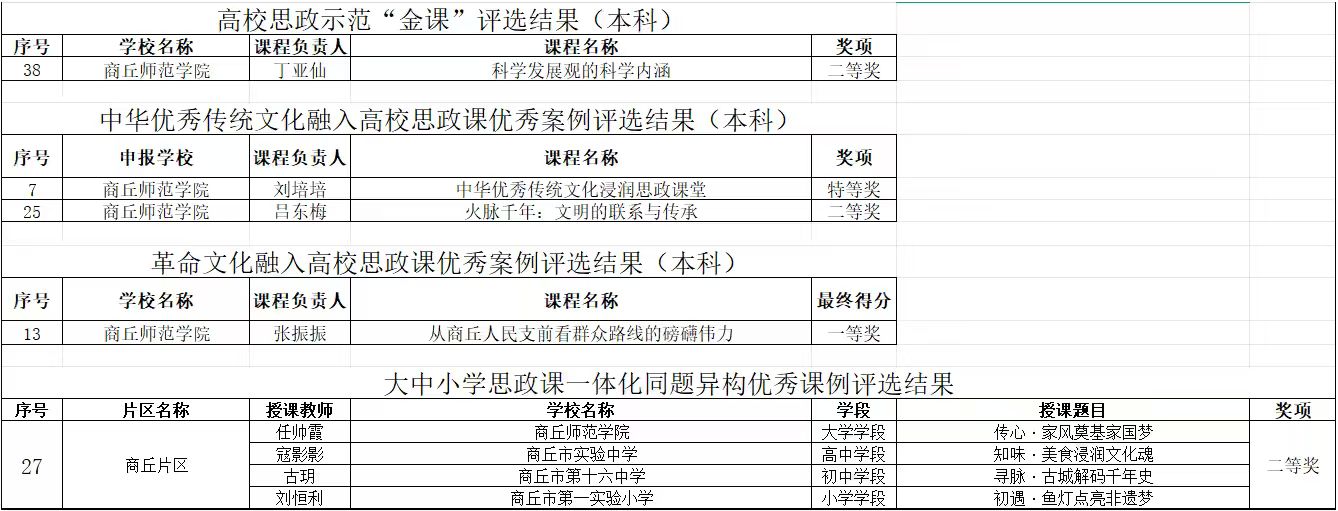近日,中共河南省委教育工委、河南省教育厅公布了2025年度优秀思政课程资源征集评选结果。beat365中文官方网站刘培培老师和吕东梅老师分别荣获中华优秀传统文化融入高校思政课优秀案例特等奖和二等奖;张振振老师荣获革命文化融入高校思政课优秀案例一等奖;丁亚仙老师荣获高校思政示范“金课”二等奖;任帅霞老师荣获大中小学思政课一体化同题异构优秀课例二等奖。